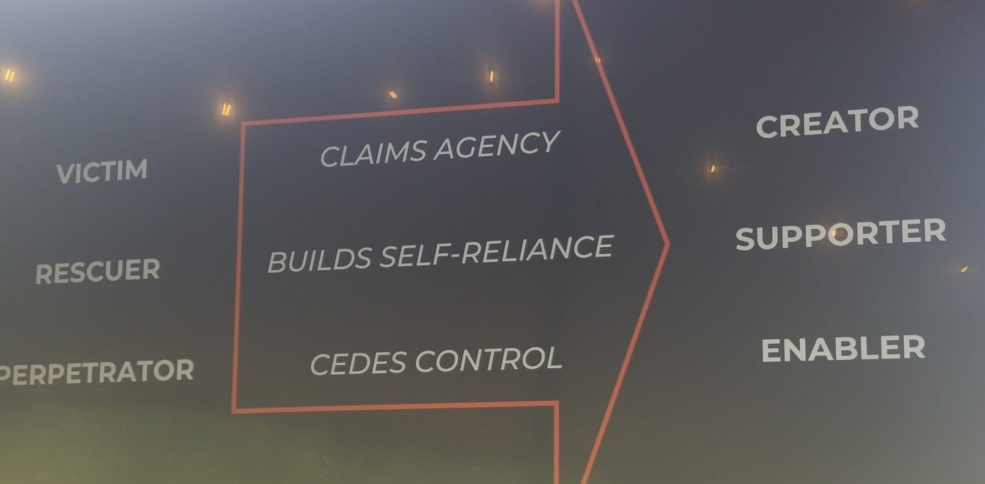Instead of seeing things through the lens of the drama triangle of perpetrator, rescuer and victim, Jon outlined a new version of the model.